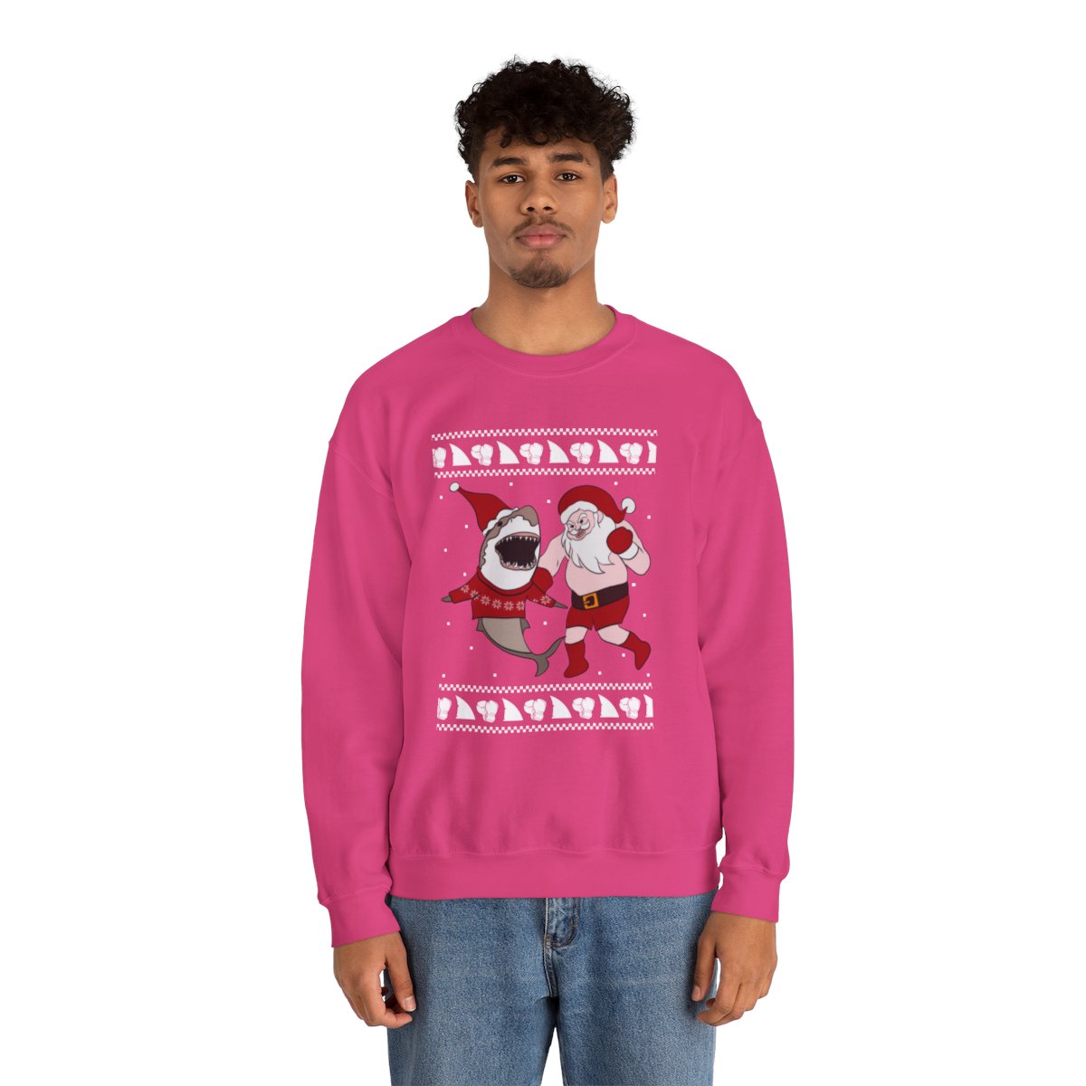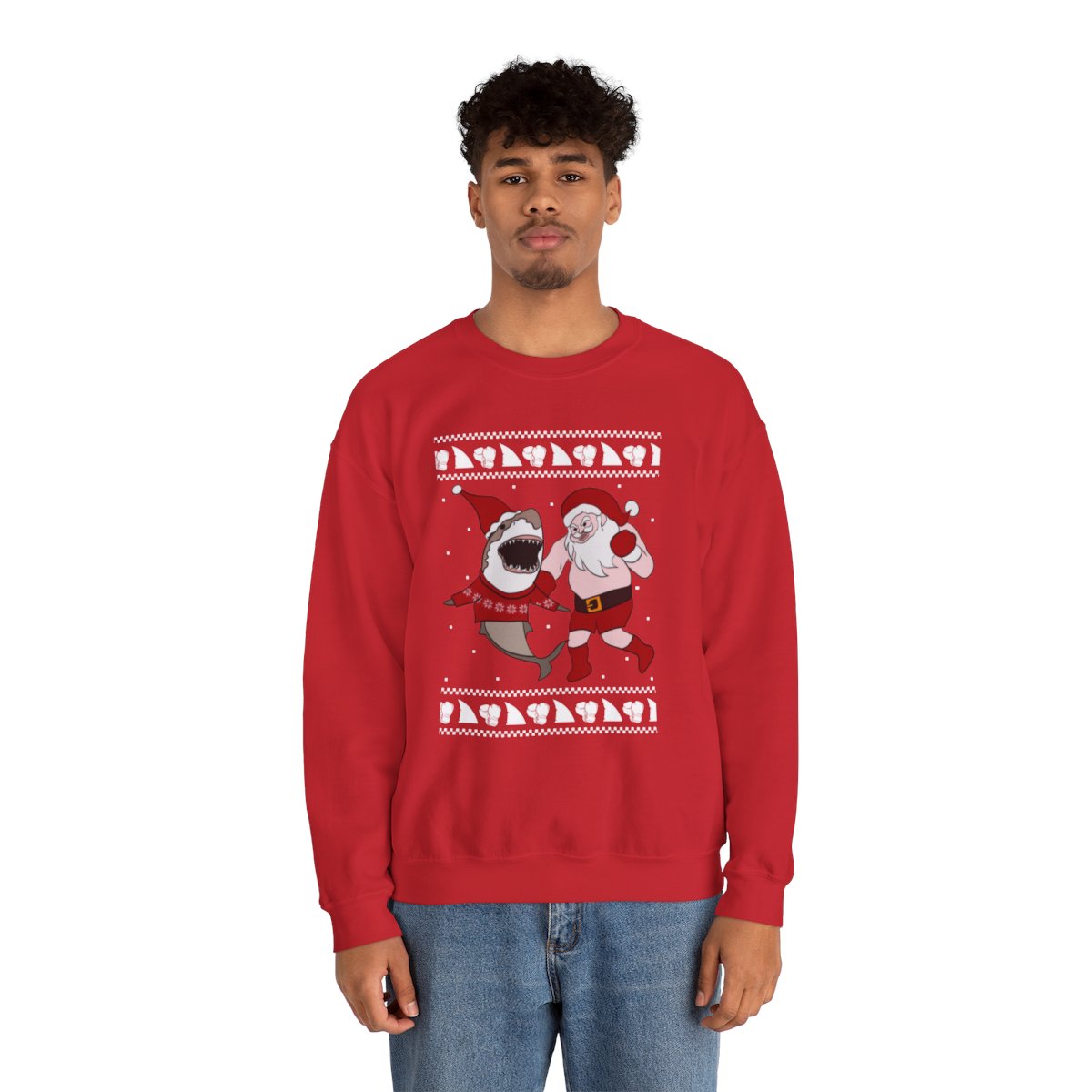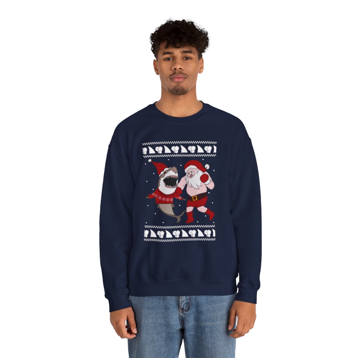 Santa Fighting Shark Ugly Xmas Sweatshirt