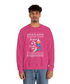 To wear throughout the celebrations, we are looking for the perfect Santa Mermaid Wishes Ugly Xmas Sweatshirt. No other place to search than Canada Ugly Christmas Sweater! Any Christmas get-together will see you as the star of the party because of our extensive collection of the most crazily colorful ugly sweaters. Whether you’re hosting a gathering of people wearing ugly sweaters or just spreading holiday cheer, these sweaters are a need!