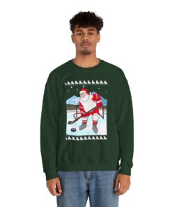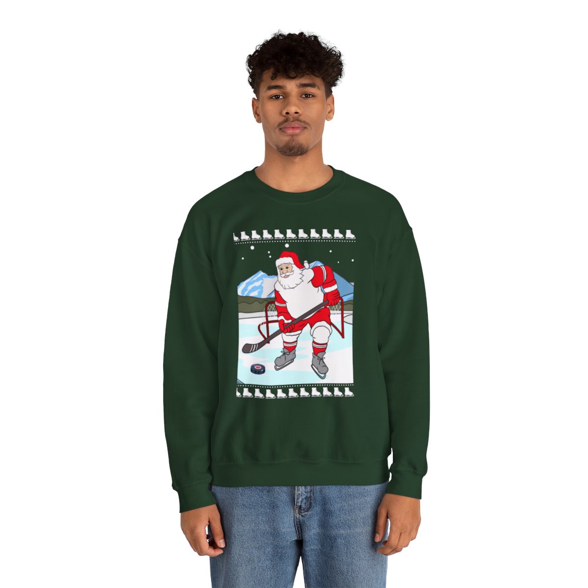 Santa Playing Hockey Ugly Christmas Sweatshirt For Unisex