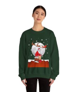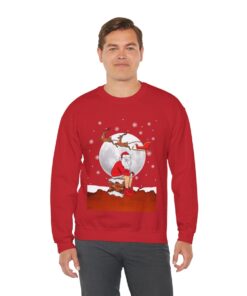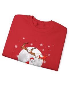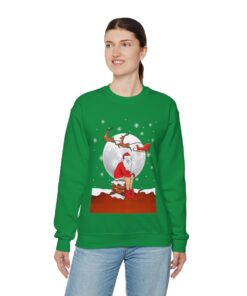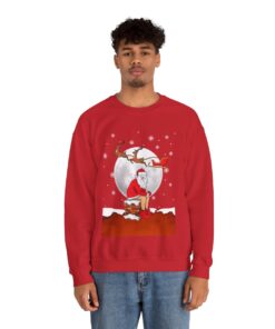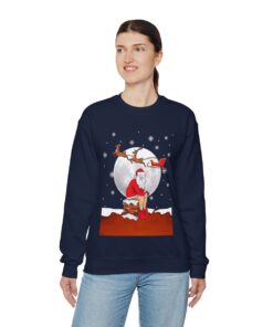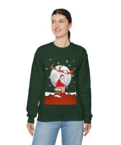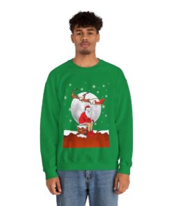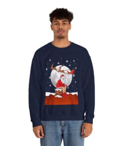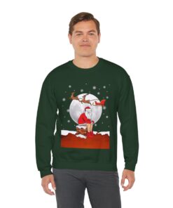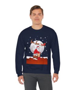 Prepare for seasonal happiness with our impressive Santa Using Toilet Men’s Naughty Ugly Christmas Sweatshirt! Make a statement at any holiday gathering with a funny sweater.
