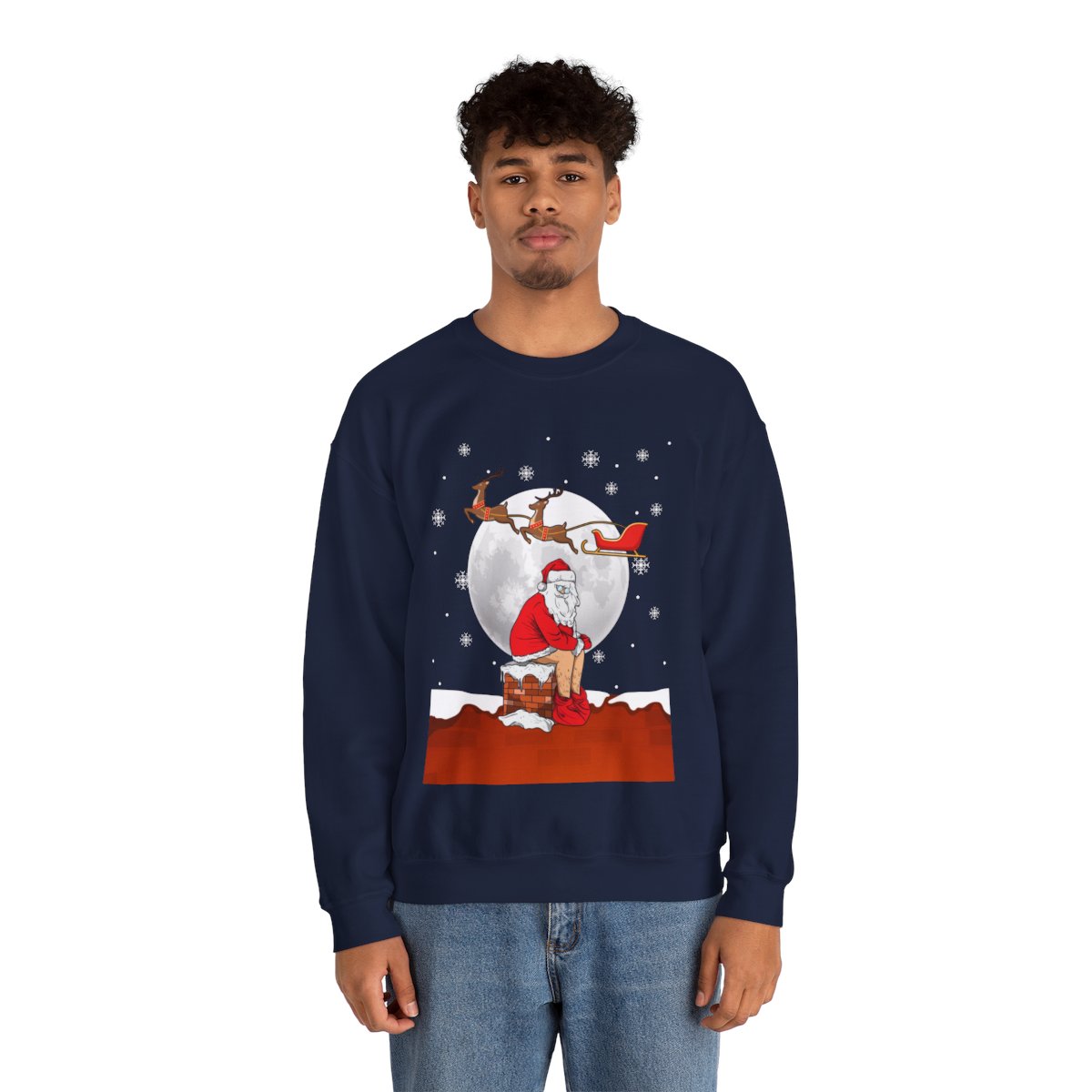 Santa Using Toilet Men’s Naughty Ugly Christmas Sweatshirt