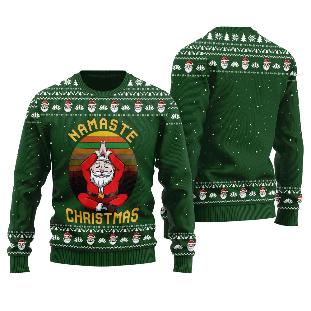 Embrace the Festive Spirit with Santa Yoga Ugly Sweater Forest Green