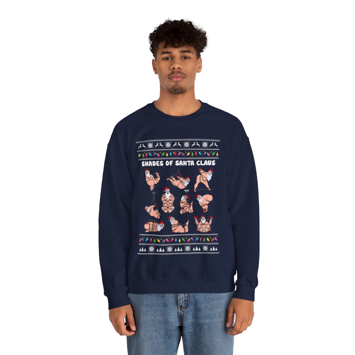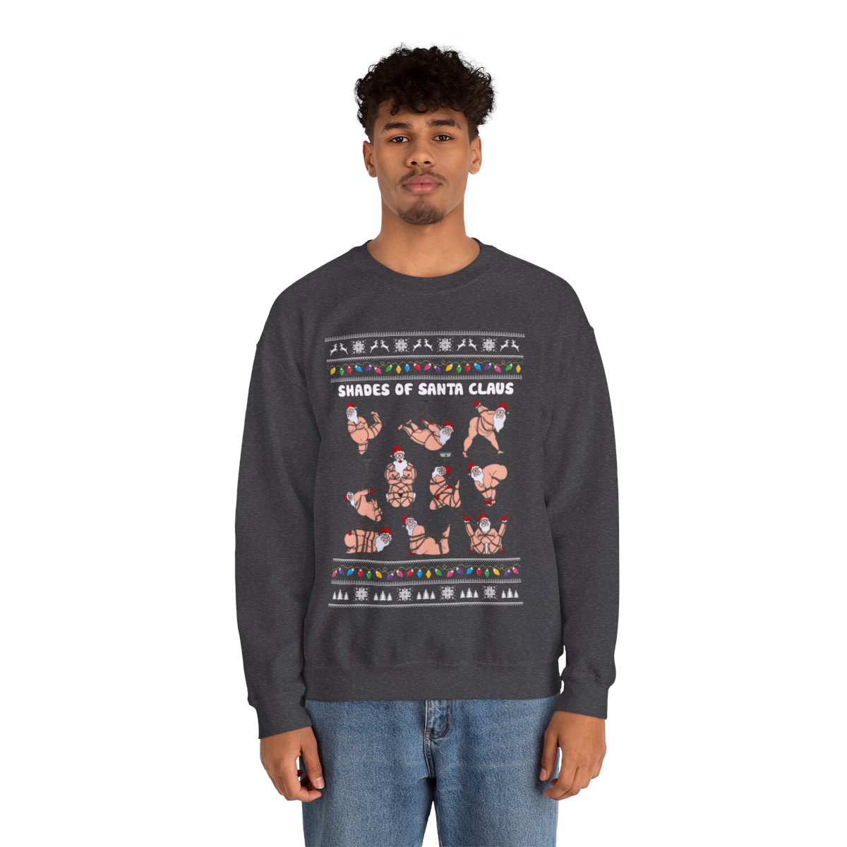 Previously considered an embarrassing fashion faux pas, ugly Christmas sweaters are now a must-have accessory for the holiday season. Bold and distinctive patterns that are sure to draw attention and start conversations may be found in our collection. For those who prefer a more somber, elegant celebration of the season or a flamboyant, comical approach, we have the perfect Sexy Shades Of Santa Christmas Sweatshirt For Men to suit every taste.