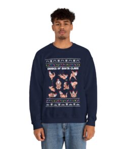 Everyone’s attention is drawn to you when you enter a room wearing an ugly Christmas sweater. Get your ideal ugly Christmas sweater today and enjoy the season. Prepare to make an impression at your upcoming Christmas get-together by wearing one of our assortment of Sexy Shades Of Santa Christmas Sweatshirt For Men to spread some holiday happiness. Get the ideal balance of witty and celebratory designs right now to be the life of the party!