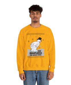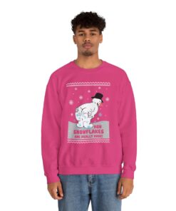 These sweaters may spark fascinating conversations and are a great way to flaunt your sense of humor. Imagine the grins and chuckles filling the room when you come in wearing one of our eye-catching Snowman Making Snowflakes Ugly Xmas Sweatshirts. You’ll instantly become the life of the party, making everyone happy and leaving enduring memories in your wake.