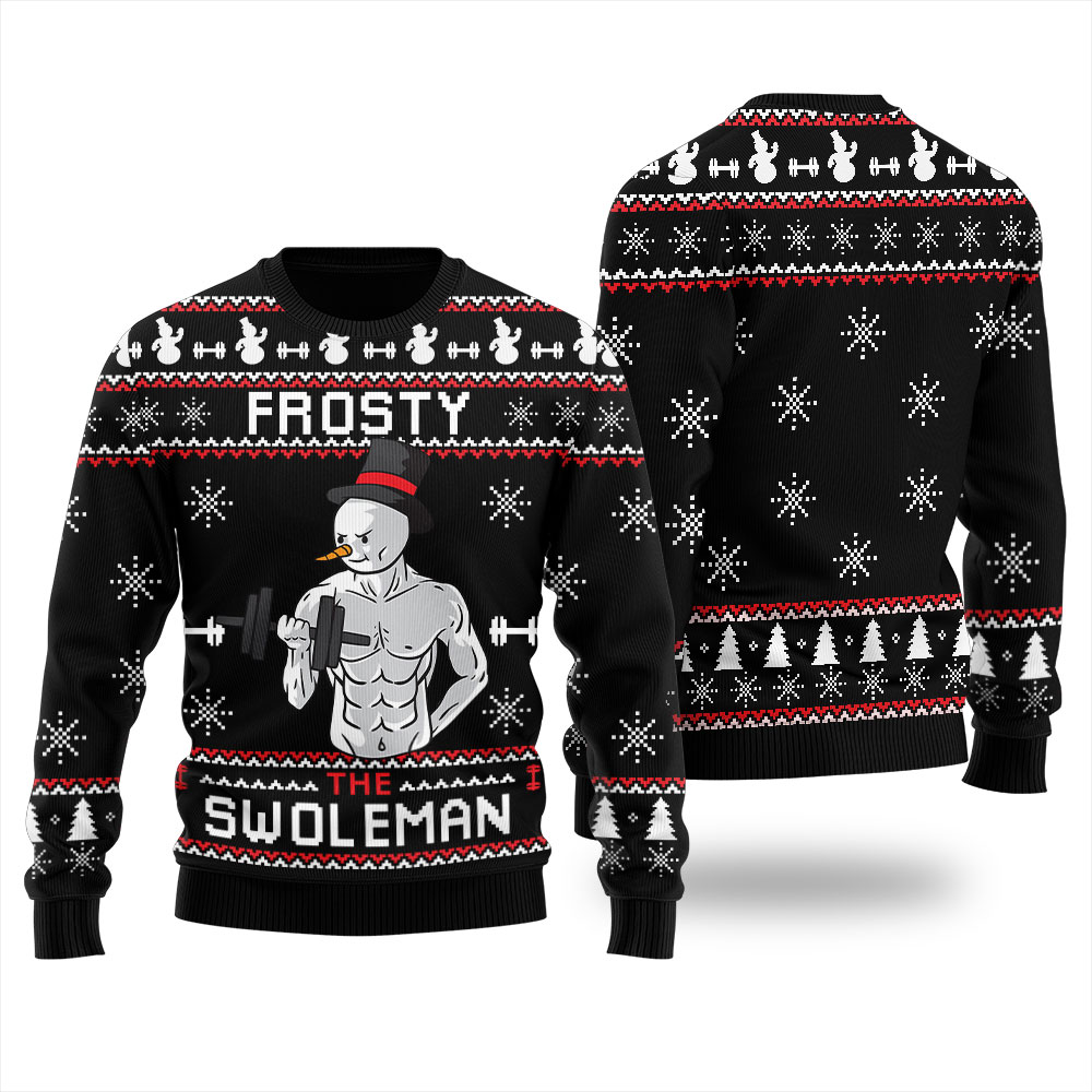 Get ready to turn heads, spread laughter, and make memories that will last a lifetime. Shop Snowman Swoleman Christmas Sweater Black now and let your ugly Christmas sweater game shine!