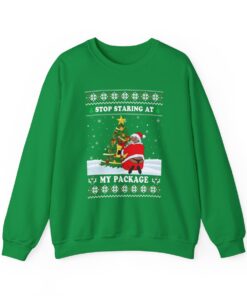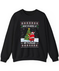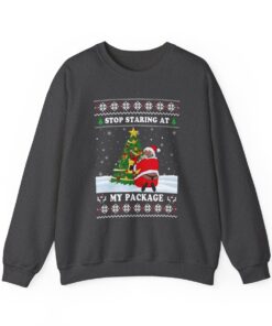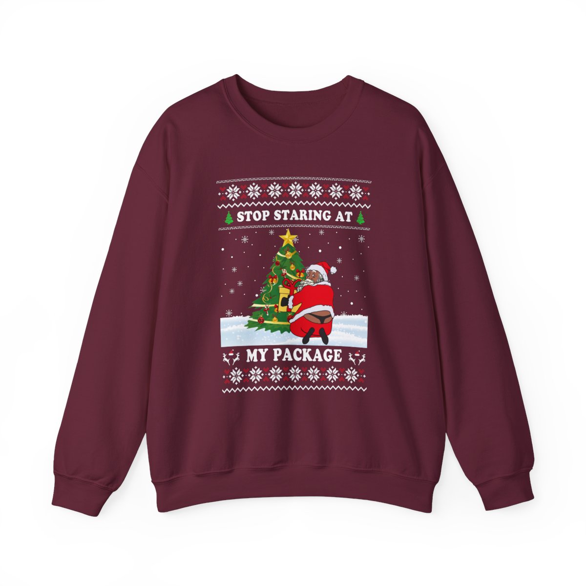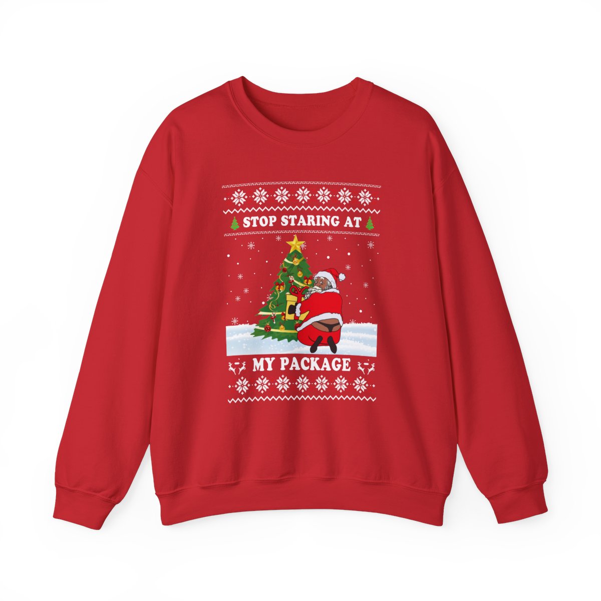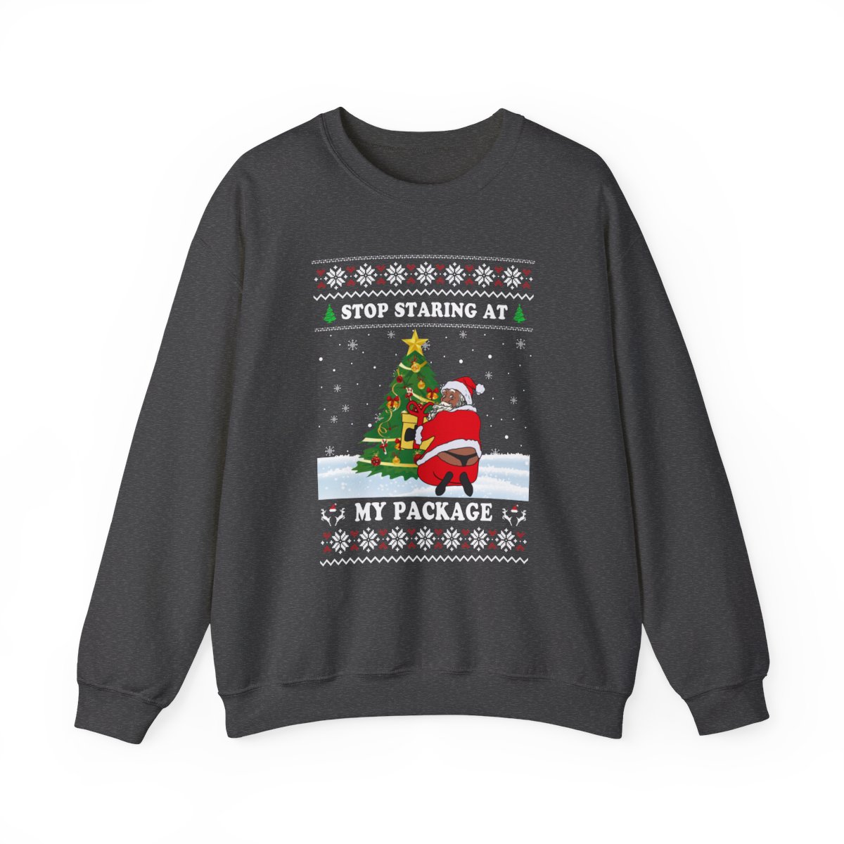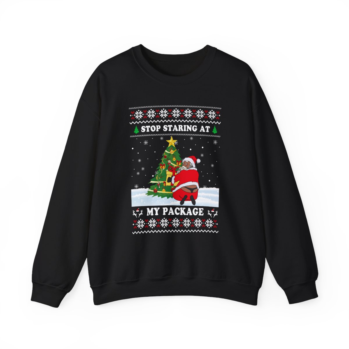 Stop Staring At My Package Black Santa Ugly Xmas Sweatshirt