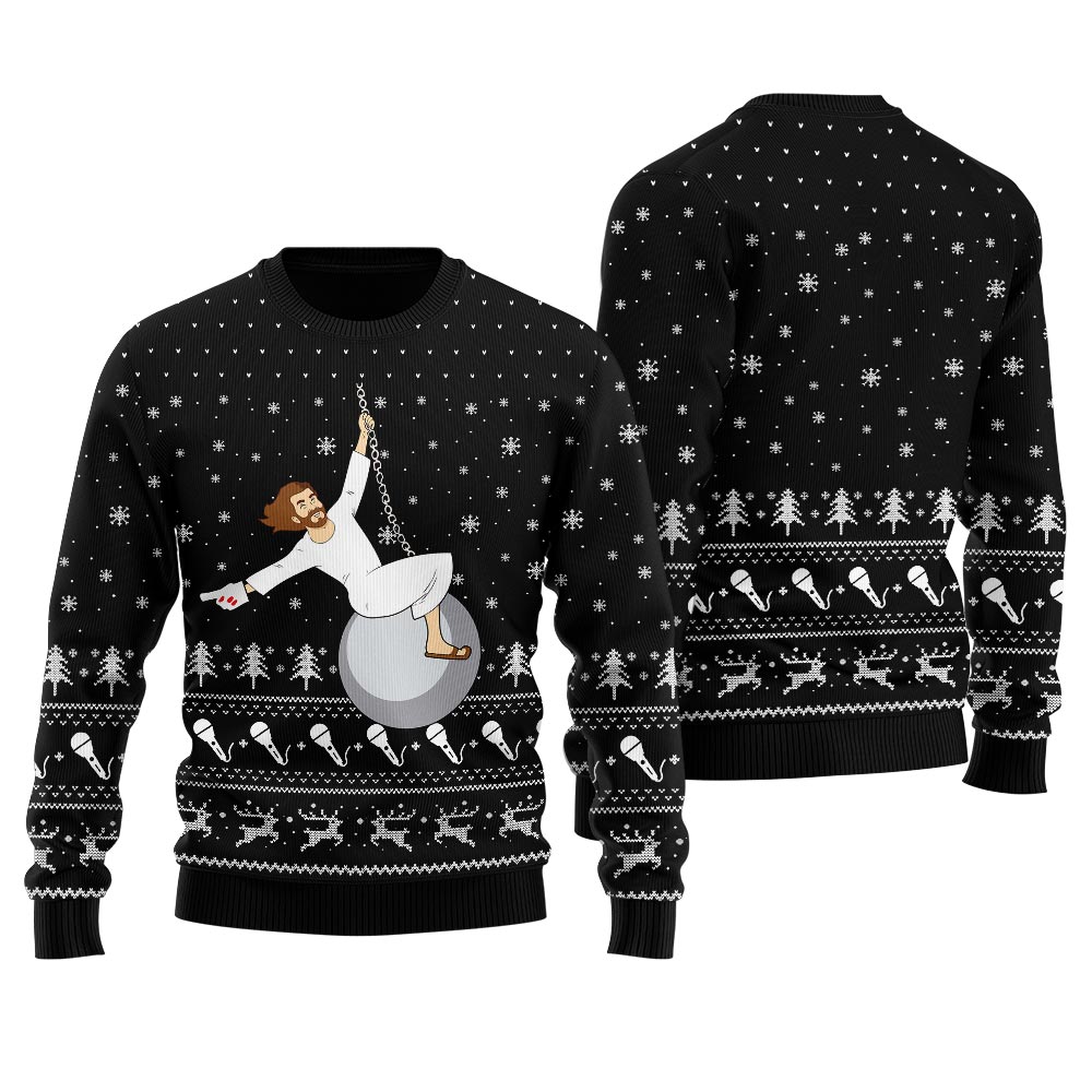 Wrecking Ball Jesus Funny Ugly Christmas Sweater Black – More Than Just A Normal Sweatshirt